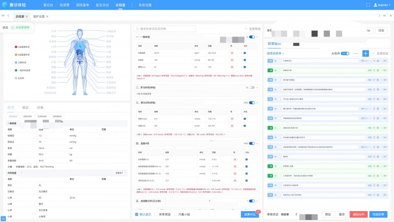 同时,该系统还自带严格的质量控制体系,能够自动校验体检数据完整性,确保每一份报告都严格符合医疗规范。通过精准识别全科室异常指标,无论是检验数据还是影像学检查结果,系统都能敏锐捕捉潜藏的关键健康风险,有效降低漏诊、误诊率,为健康诊断提供更加可靠的依据。