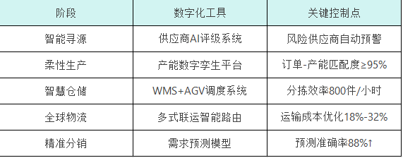 深化人工智能应用: 强化AI在复杂需求预测、智能仓储布局优化、自动化配送调度、供应链风险模拟与仿真等核心场景的应用深度,显著提升运营效率与供应链整体韧性。